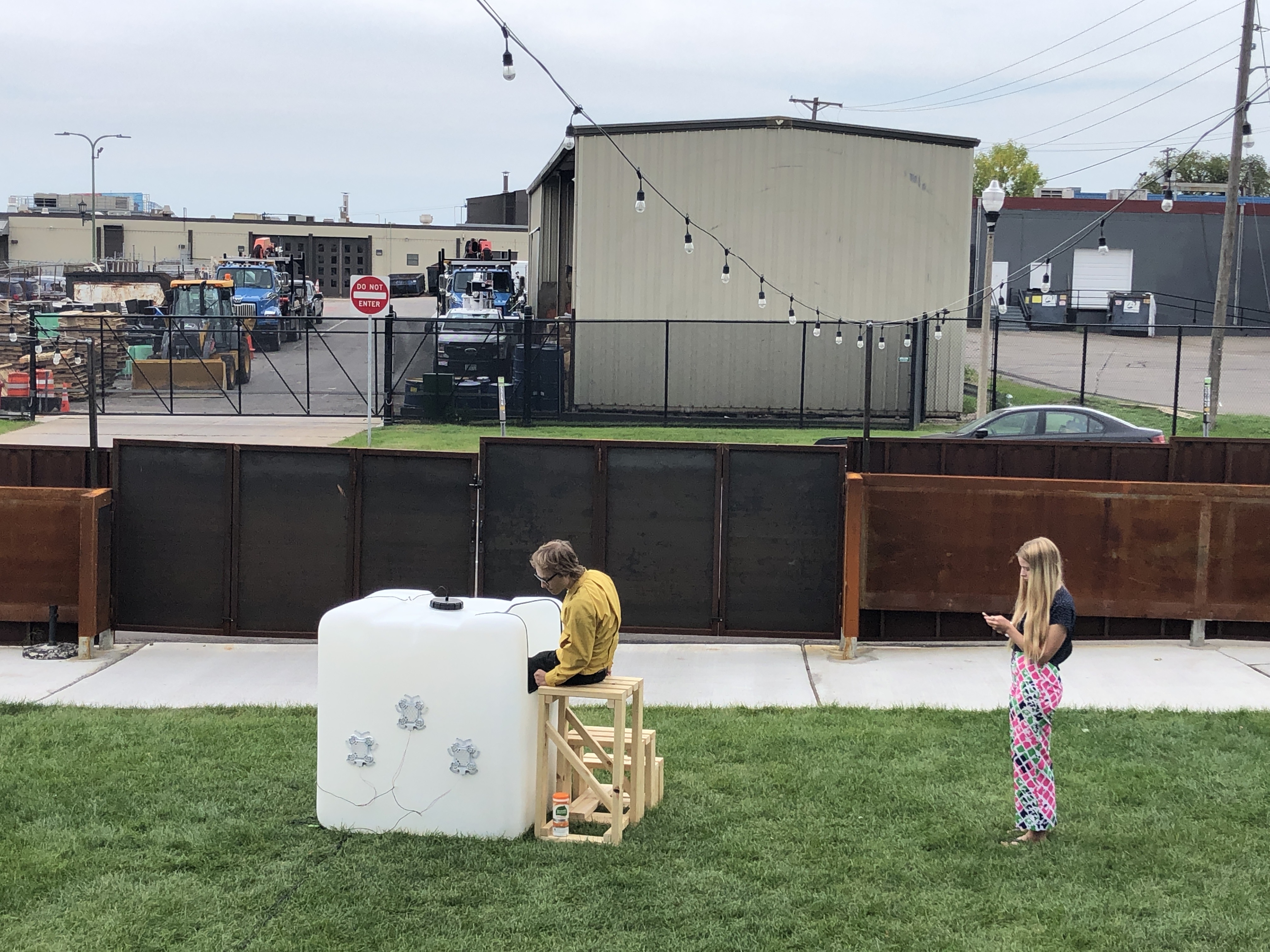 A collaboration with Joshua McGarvey, Two Resonant Spaces is a sound installation that experiments with the idea of a conversation, focusing on elements such as feedback and proximity. Individuals are invited to immerse themselves in two large containers, which use an arrangement of microphones and speakers to respond to even the smallest changes in both the internal and external environments. The two containers have been designed to produce consistent yet variational feedback created by the reaction of their proximities to one another, simulating a continuous dialogue. Once inside, individuals integrate with the containers' feedback, encouraging a more intimate relationship between themselves and their immediate environment. Two Resonant Spaces welcomes us to reflect on our proximities with one another and to examine how contemporary forms of communication might simultaneously interrupt and augment certain relationships.